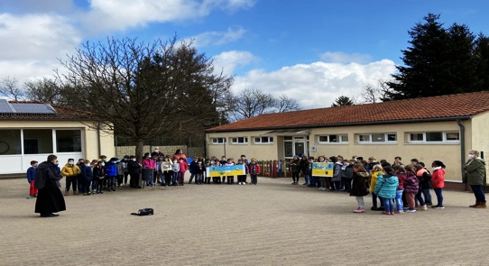 Die Schüler und Eltern der GS an der Blies (Dependance Blickweiler) zeigten große Spendenbereitschaft. In kürzester Zeit haben die Schüler, deren Eltern und Lehrer in Zusammenarbeit mit dem Kloster Blieskastel ein Spendenpaket für die Opfer des Krieges in der Ukraine gepackt. Fleißig wurden Hilfsgüter für die ukrainischen Flüchtlinge gesammelt und in einer kleinen Andacht auf dem Schulhof in Blickweiler an Pater Mateusz Klosowski übergeben.